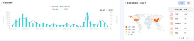 HailBot的攻击比RapperBot更加稳定。平均每天攻击指令上千条、攻击上百个目标。攻击目标分布在中国,美国,英国,中国香港,德国等地区。具体攻击指令趋势和攻击目标地区分布如下图:
