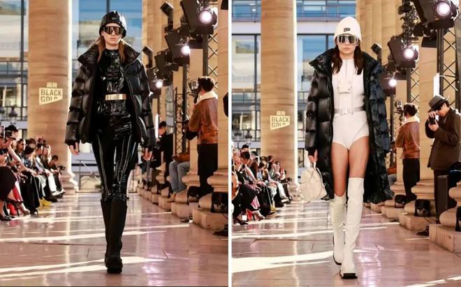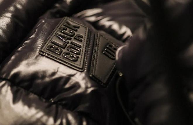 他推出黑金鹅绒服1.0,版型为基础款,颜色只做了百搭的黑色,配上黑金LOGO,构成独特的视觉标识。